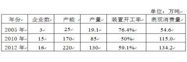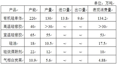 表2 2012年有機(jī)硅主要產(chǎn)品生產(chǎn)消費情況