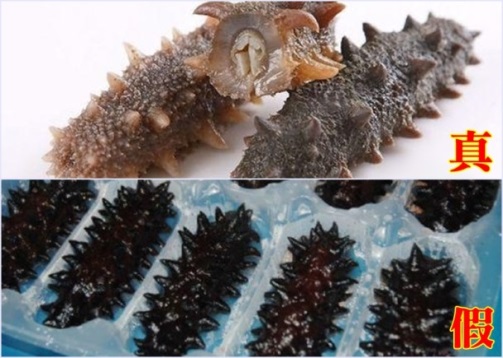 海參造假摻假事件時(shí)有報(bào)導(dǎo),最近便有廣州食肆出售「人造海參」。據(jù)聞假海參是以海藻粉和魔芋粉等制成,但外表有點(diǎn)「瑕疵」(如兩頭封閉、刺長(zhǎng)短整齊、顏色烏黑不自然等)。