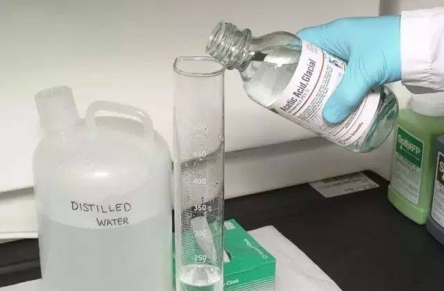 稀釋硫酸時應將硫酸緩慢倒入水中,不可反操作。揮發(fā)性的酸如鹽酸、醋酸、硝酸、三氟乙酸、三氟甲磺酸、高氯酸、等應在通風櫥操作,并帶上口罩,防護境。