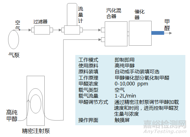 專門滿足GB/T 18801測試需求的專業(yè)甲醛發(fā)生器,其原理是使用空氣和高純甲醇為原料,通過催化部分氧化反應(yīng)在線制取甲醛