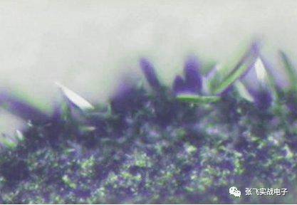 有一批現(xiàn)場儀表在某化工廠使用一年后,儀表紛紛出現(xiàn)故障。經(jīng)分析發(fā)現(xiàn)儀表中使用的厚膜貼片電阻阻值變大了,甚至變成開路了。把失效的電阻放到顯微鏡下觀察,可以發(fā)現(xiàn)電阻電極邊緣出現(xiàn)了黑色結(jié)晶物質(zhì),進(jìn)一步分析成分發(fā)現(xiàn),黑色物質(zhì)是硫化銀晶體。原來電阻被來自空氣中的硫給腐蝕了。