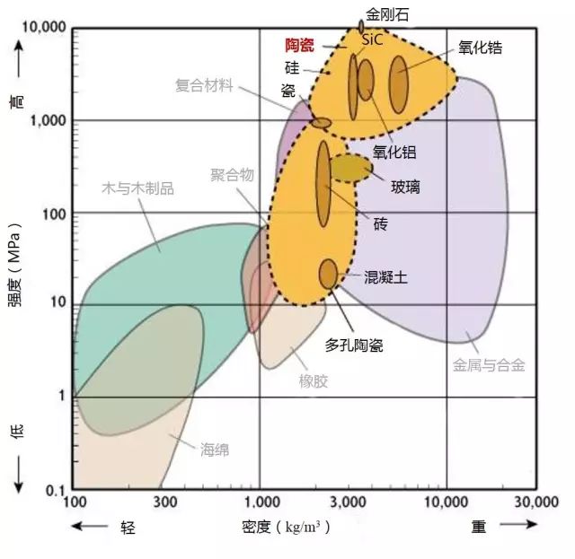 1、下圖標(biāo)識(shí)的強(qiáng)度為拉伸強(qiáng)度,除了陶瓷為抗壓強(qiáng)度。