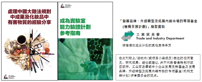 為使項目成果及經(jīng)驗能令更多中成藥、化妝品、檢測認證業(yè)界取得相關信息,達致更大效益, 本項目亦因此成立「安全咨詢及測試服務中心」及網(wǎng)站www.hksctsc.org ,以便進一步與業(yè)界交流。同時, 亦已印發(fā)《處理中國大陸法規(guī)對中成藥及化妝品中有害物質(zhì)的經(jīng)驗分享》及《成為實驗室能力驗證計劃提供者》兩本小冊子, 以供業(yè)界參考。