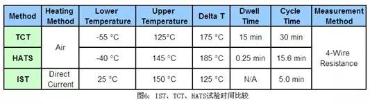 IST試驗雖然試驗時間最短,但其也有不足之處,它的高低溫溫差是最小的,溫差決定了測試樣品的工作溫度范圍,溫差越大,代表樣品能工作在更高或更低的溫度,如圖6所示: