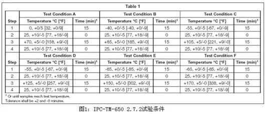 IPC定義的熱沖擊(ThermalShock)試驗,其與封裝業(yè)JEDEC的溫度循環(huán)試驗(TCT)類似,但與JEDEC的熱沖擊試驗(TST)有差異,因為IPC的熱沖擊試驗(TS)和JEDEC的溫度循環(huán)試驗(TCT),都是基于空氣傳熱的,而JEDEC的熱沖擊試驗(TST)是基于液體傳熱的,其溫度轉(zhuǎn)換速率遠(yuǎn)遠(yuǎn)高于空氣傳熱,故如果客戶要求測試TS時,還是需要確定所依據(jù)的標(biāo)準(zhǔn)和試驗條件。