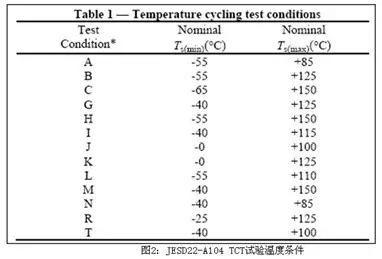 JEDEC原為美國電子工業(yè)協(xié)會EIA之下屬團(tuán)體,現(xiàn)已獨立出來成為IC封裝業(yè)的專門組織,曾就有機(jī)IC載板與半導(dǎo)體成品之品檢與可靠度試驗訂定許多規(guī)范,其涉及到溫度循環(huán)方面最常見的兩個試驗如下: