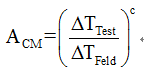按下面方式計(jì)算Coffin-Manson模型的加速度系數(shù)與場(chǎng)地平均溫度變化的關(guān)系: