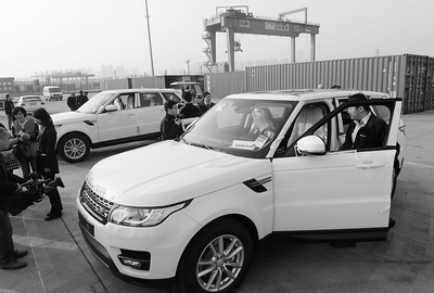 11月18日,在鄭州國際陸港聯(lián)檢中心,檢驗檢疫人員對進口路虎攬勝車進行查驗。這是鄭州汽車整車進口口岸通過國家驗收以來的首批進口整車,從此將有更多歐系汽車經(jīng)新絲綢之路的鄭歐班列進入中國內(nèi)地。