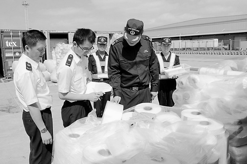 2013年起,上海外高橋檢驗檢疫局積極響應“一次申報、一次查驗、一次放行”通關改革方案的號召,率先在廢物原料查驗領域開展試點,通過構(gòu)建集中查驗場站、設立檢關聯(lián)合查驗工作區(qū),成功實現(xiàn)了一次移箱完成海關H986查驗和檢驗檢疫門式放射檢測的同步初篩,一次受理查驗計劃并在同一場地實施查驗的同步作業(yè),以及關檢信息共享對貨物實施一次放行。新模式試行以來,大大提高了通關效率,降低企業(yè)通關成本。日前,該局與海關、查驗場站聯(lián)合召開階段性總結(jié),持續(xù)性推進檢關聯(lián)合試點經(jīng)驗推廣。圖為外高橋口岸檢關聯(lián)合對一批進境廢塑料實施共同查驗。