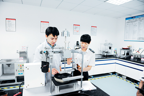 日前,浙江愛仕達(dá)電器股份有限公司主辦的以“攜手世博·共創(chuàng)低碳生活”為主題的自愿減排活動(dòng)在世博民企聯(lián)合館舉行。為了助推浙江愛仕達(dá)電器股份有限公司踐行低碳經(jīng)濟(jì),臺(tái)州檢驗(yàn)檢疫局主動(dòng)作為,大膽創(chuàng)新,為該公司低碳產(chǎn)品的出口構(gòu)建了一條“綠色通道”。圖為臺(tái)州檢驗(yàn)檢疫局工作人員在浙江愛仕達(dá)電器股份有限公司實(shí)驗(yàn)室與企業(yè)檢測人員共同開展鍋底涂層耐磨試驗(yàn)。鐘 英 攝 《中國國門時(shí)報(bào)》