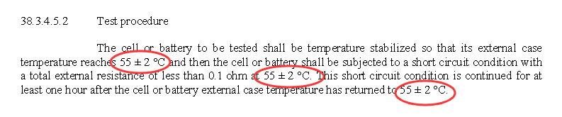 3、Section 38.3.4.5.2 修改了電池環(huán)境溫度為57±4℃