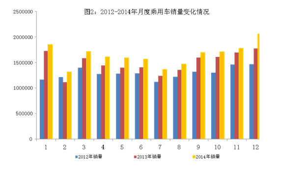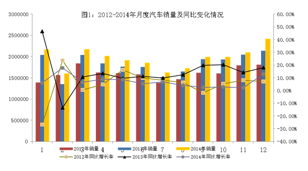 2014年,我國(guó)汽車市場(chǎng)呈現(xiàn)平穩(wěn)增長(zhǎng)態(tài)勢(shì),平均每月產(chǎn)銷突破190萬(wàn)輛,全年累計(jì)產(chǎn)銷超過(guò)2300萬(wàn)輛。