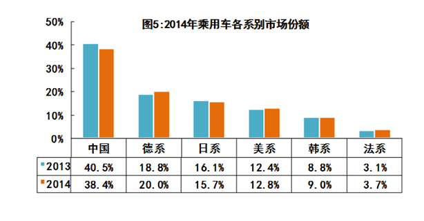 2014年,自主品牌乘用車銷售757.33萬(wàn)輛,同比增長(zhǎng)4.1%,占乘用車銷售市場(chǎng)的38.4%,市場(chǎng)份額同比下降2.1個(gè)百分點(diǎn)。其中自主品牌轎車銷售277.44萬(wàn)輛,同比下降17.4%,占轎車市場(chǎng)的22.4%,市場(chǎng)份額同比下降5.6個(gè)百分點(diǎn)。