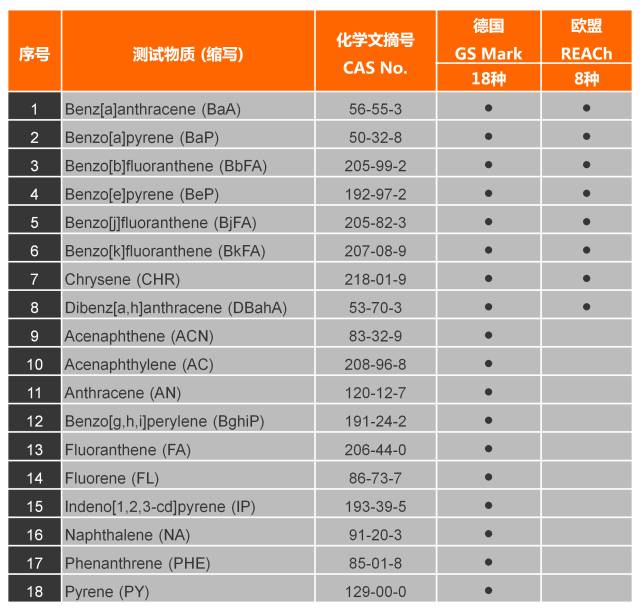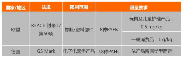 多環(huán)芳烴PAHs的全稱為Polycyclic Aromatic Hydrocarbon,在工業(yè)上基本無生產(chǎn)和使用價值,只是生產(chǎn)過程的副產(chǎn)物。消費品中的PAH主要是污染所致,如使用含用PAH的黑色色粉和軟化油,或受到運輸或存儲中使用的保護劑(如萘)或揮發(fā)性PAH污染等。柔軟和深顏色的聚合體、油漆和涂料一般被認為是含有PAH的高風險物料。